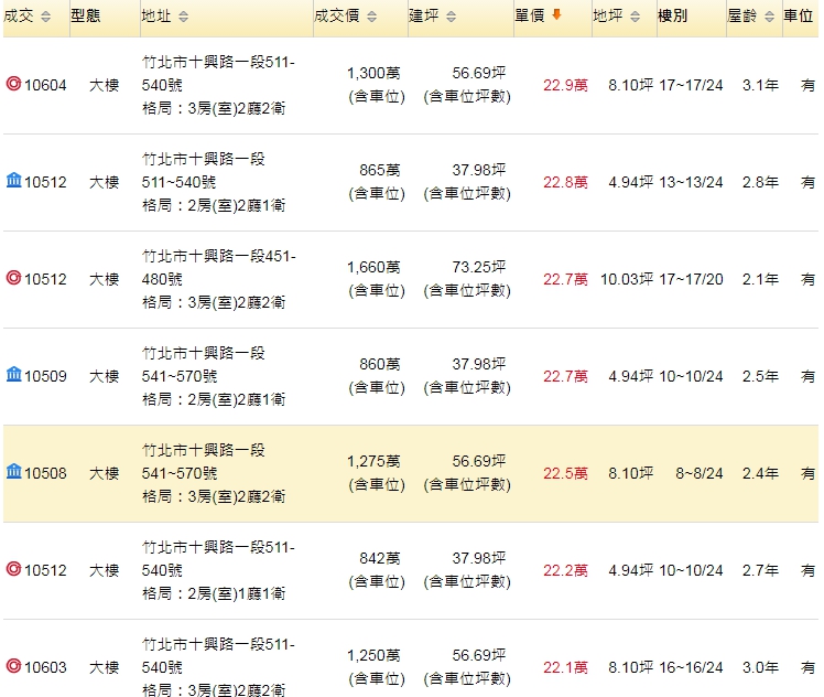 近一年十興路附近的大樓3房行情維持在22~24萬/坪左右,